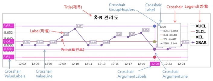 ((LineSeriesView)this.chartControl1.Series["XLCL"].View).LineMarkerOptions.Kind = MarkerKind.Cross; // 마크 모양