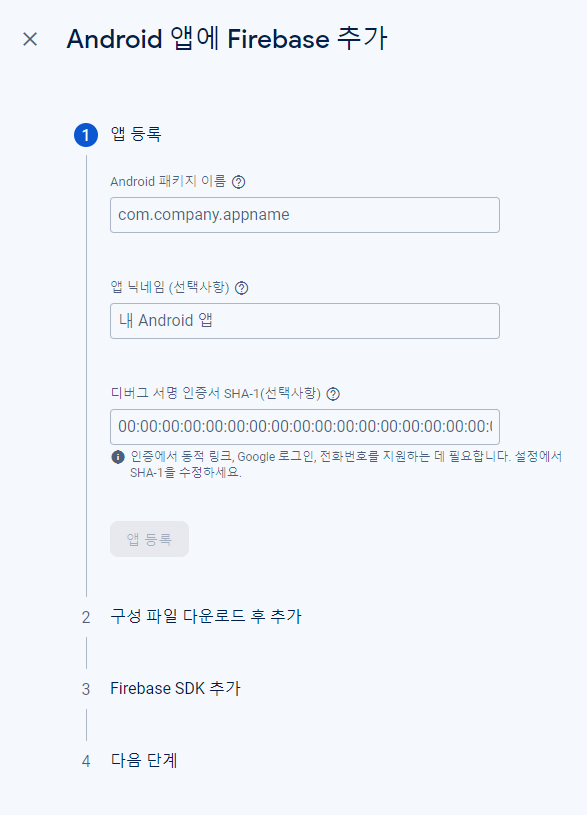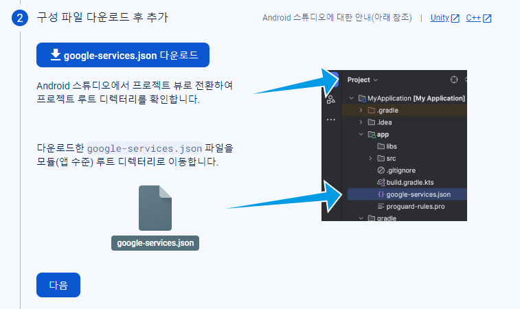 앱 등록을 하면 google-service.json 파일을 다운 받을 수 있게 된다.