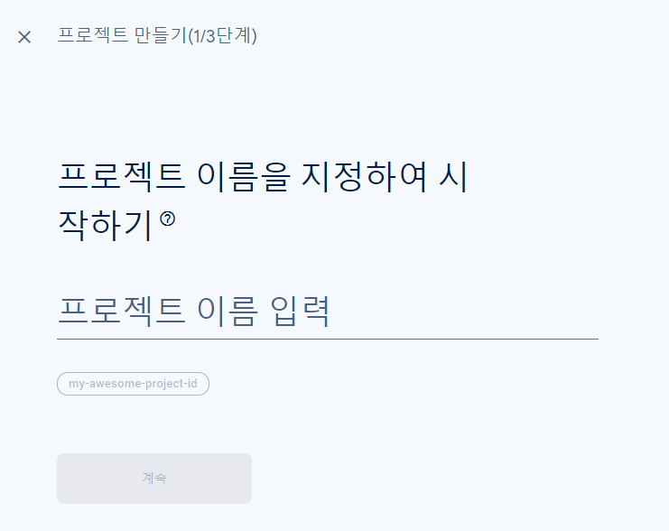 프로젝트 이름을 설정 해 주고 계속 버튼을 클릭 한다.