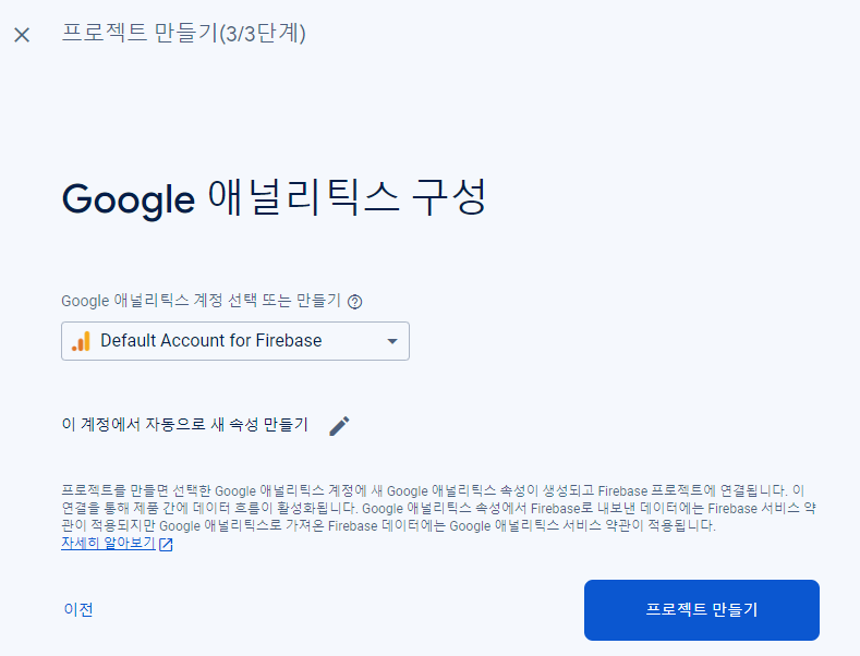 구글 애널리틱스를 사용하기위한 계정을 설정 해준 뒤 프로젝트를 생성한다.