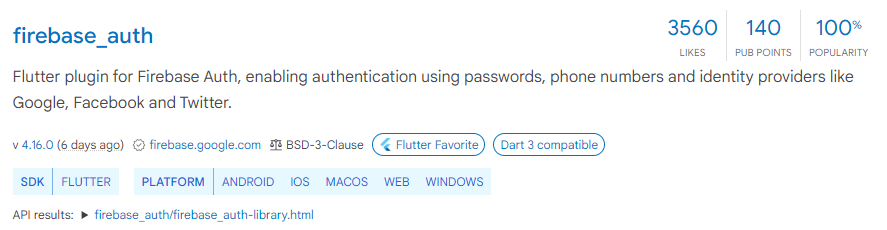 pubspec.yaml 파일에 firebase_autj : 원하는 버전 을 입력 하면 된다.