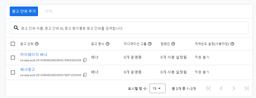 광고단위 만들기 버튼을 누르면 광고 만들기는 완료 되었다.